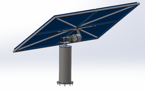 For a design and manufacturing class at Case Western Reserve University, I acted in the capacity of project manager for the task of designing a dual axis solar panel assembly. This would hold four 250W solar panels while having rotational capabilities on two axes which allows it to track the suns position in the sky throughout the day, correlating to a 25% increase in efficiency. The specifications were that the assembly should function in a remote area with maintenance only being required once per year and should be in service for at least 7 years. As project manager I gained experience with planning out GANNT charts and task lists, as well as contributing with my design knowledge.